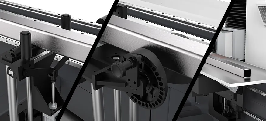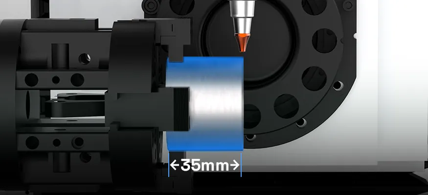 서보 구동식 전면 척은 절단 시 레이저 헤드를 전면 척과 후면 척 사이로 이동시킵니다. 이러한 구성은 긴 가공물의 높은 정밀도를 보장하고 고객에게 일관된 최종 제품 품질을 보장합니다.